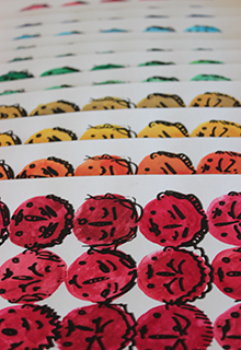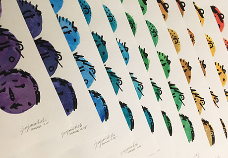 Peintures à la gouache sérigraphiées en noir. (13 exemplaires)