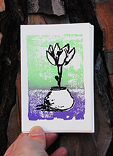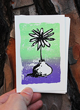 Série de 8 cartes florales, dégradé vert/violet et noir.