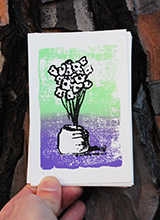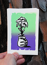 Série de 8 cartes florales, dégradé vert/violet et noir.